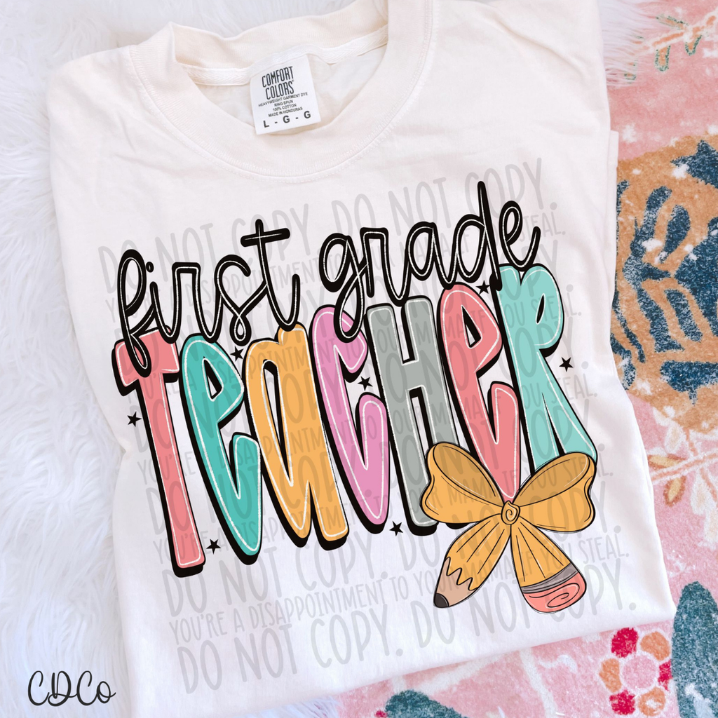 Pencil School Bows Teacher 1/2 DTF
