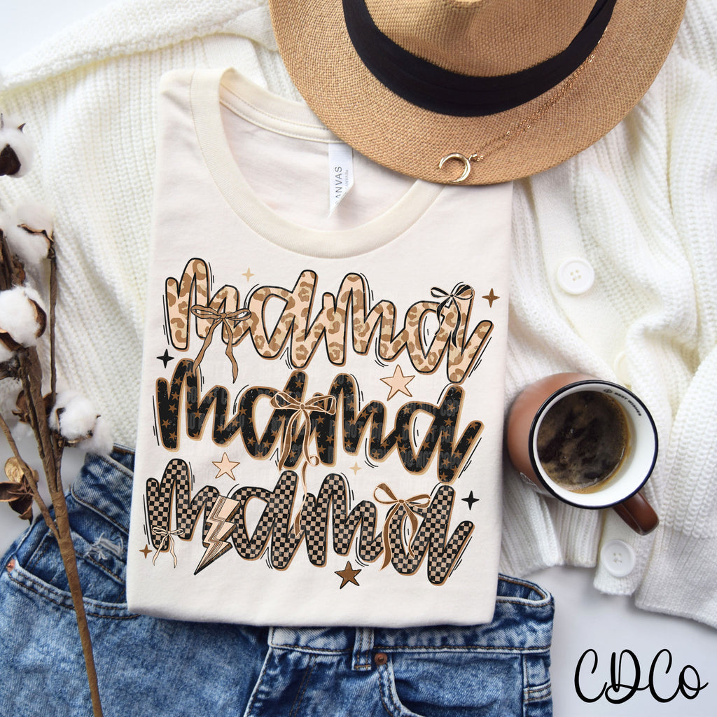 Earthy Leopard Checkered Bow Mama/Mini DTF